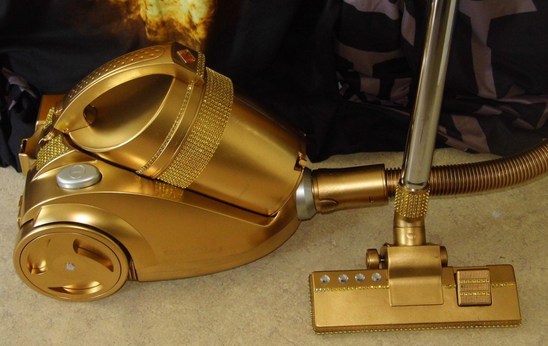 Goldener Staubsauger - Exponat der Ausstellung "Marler Kunststern 2016" mit dem Thema "Größenwahn"